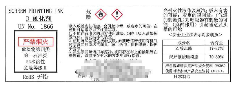 ---------------------(北京)有限公司報(bào)檢的印刷用油墨(HS編碼:********化學(xué)品正式名稱(chēng):*********,聯(lián)合國(guó)UN編號(hào): 1210),共**(桶/袋/箱等)**kg (噸/千克),使用包裝UN標(biāo)記 ,從日本國(guó)家進(jìn)口至中國(guó)。