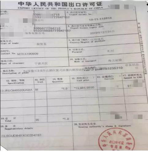 2、 想商務局申請的《中華人民共和國出口許可證》