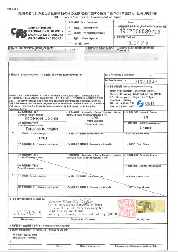 5. 瀕危物種允許進出口證明書CITES