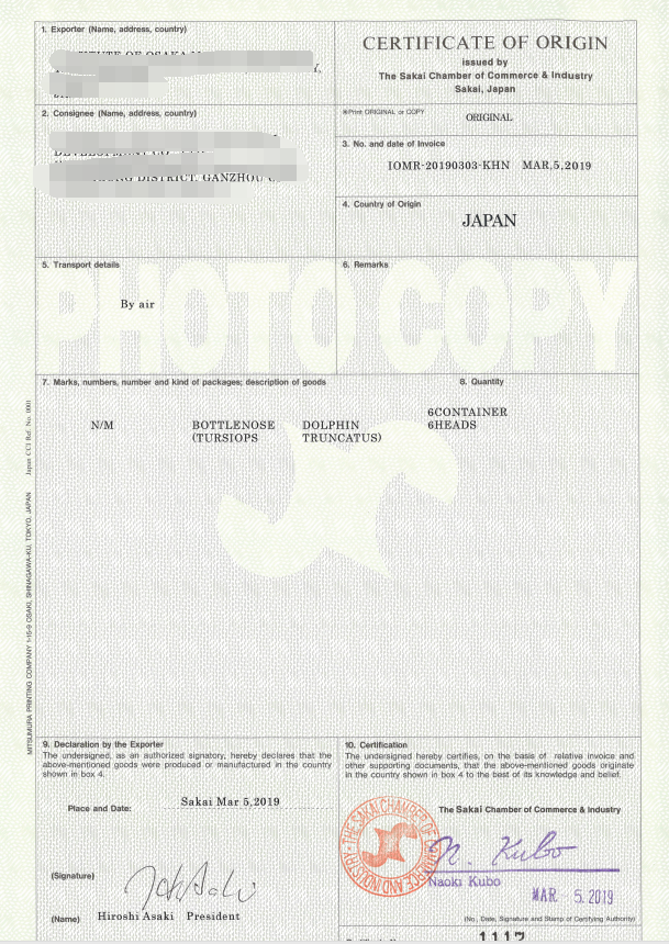 Japan export license, Japan export country quarantine certificate, health certificate, certificate of origin.