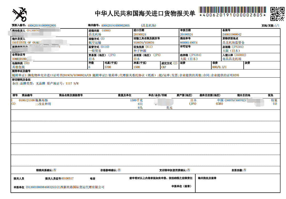 活體動物進口清關-海豚