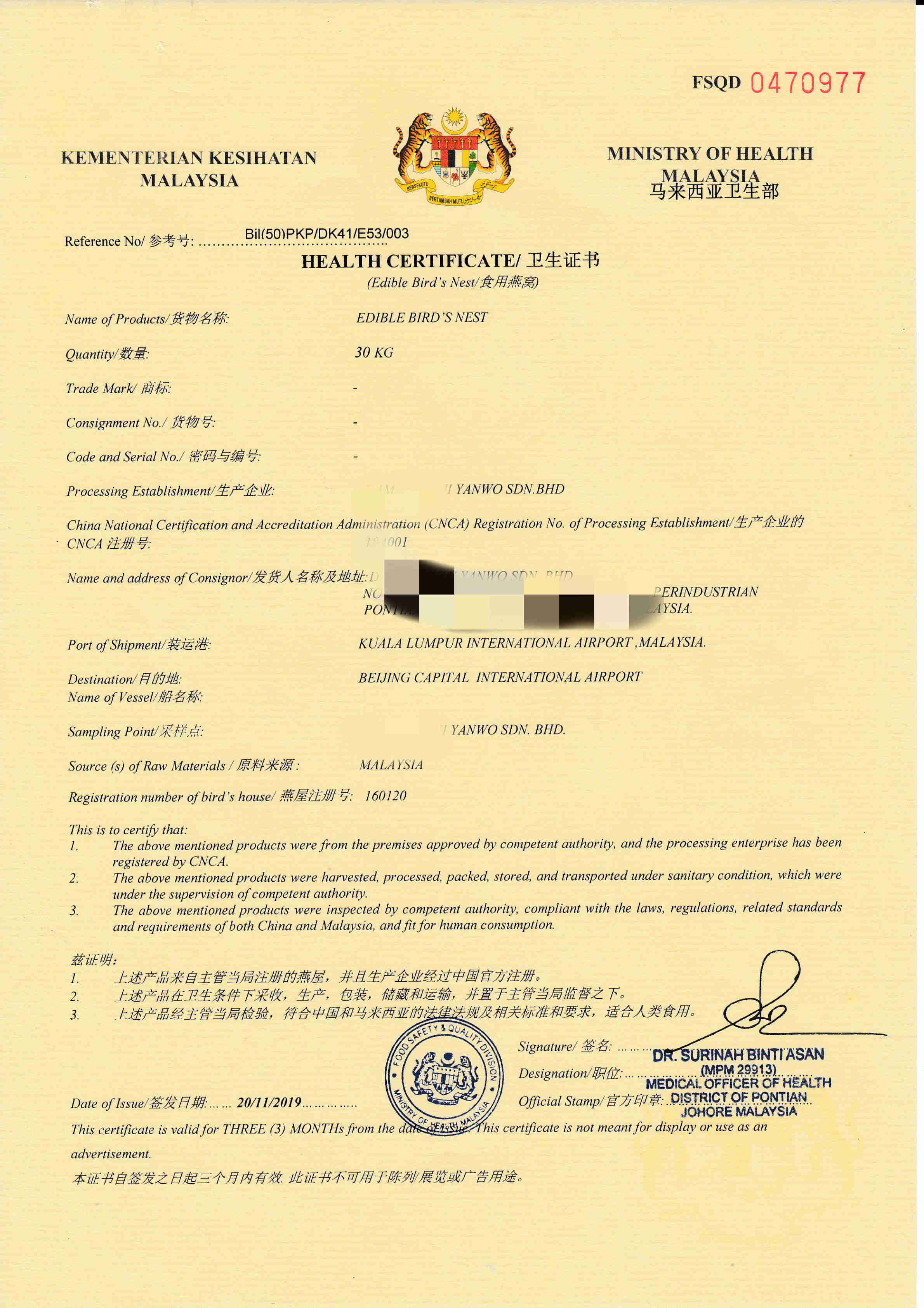 5. 衛(wèi)生證(發(fā)貨人提供)