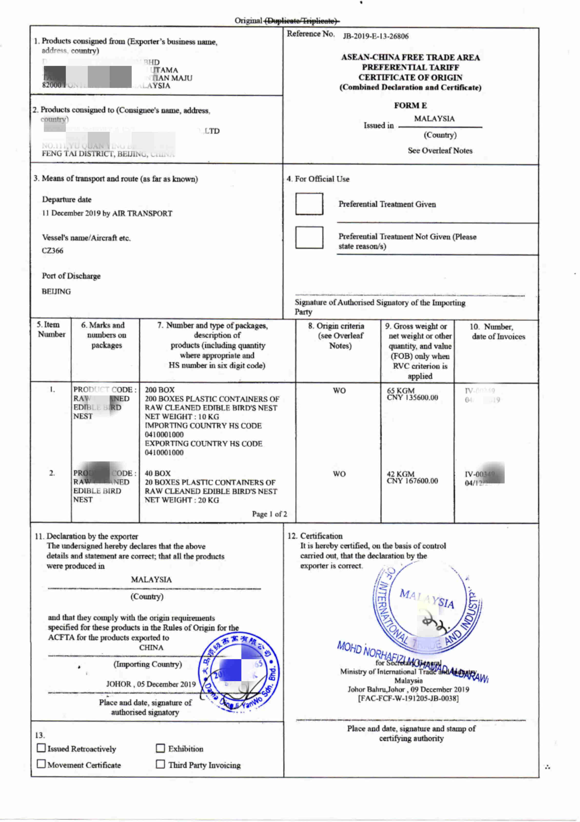 6. 產(chǎn)地證(發(fā)貨人提供)