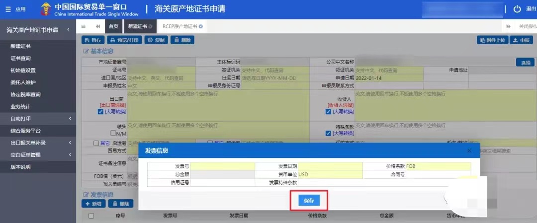 單一窗口海關(guān)RCEP原產(chǎn)地證書申領(lǐng)操作流程
